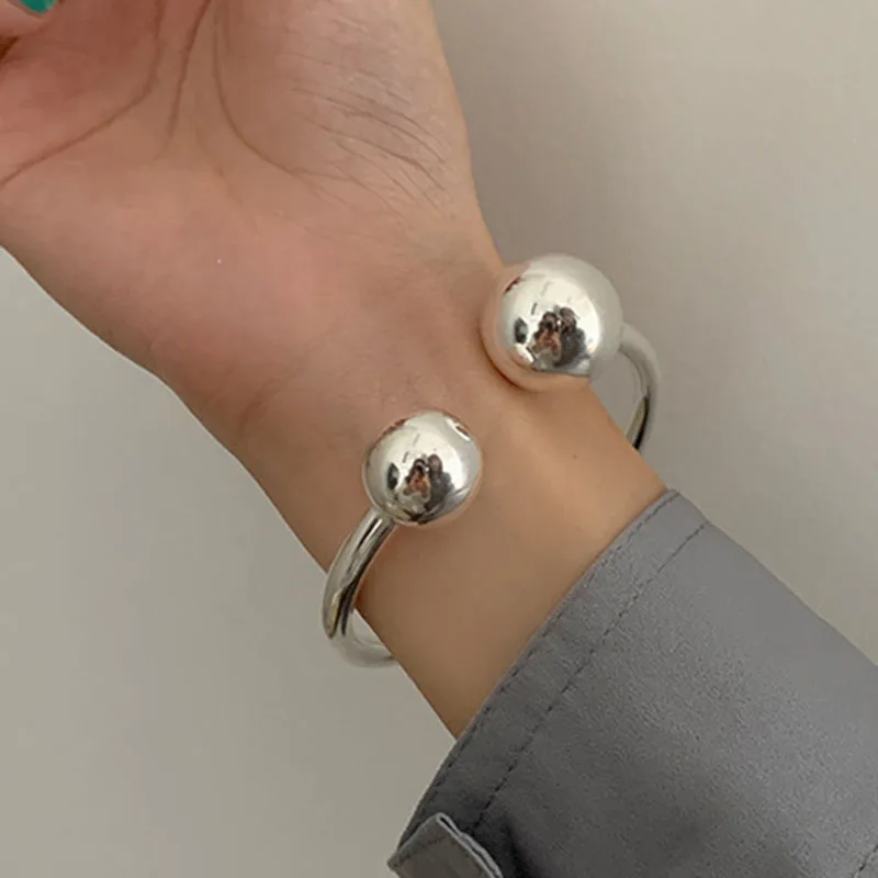 Amazing minimalist bracelet. Looks exactly like the seller’s photo. Made carefully. Inner diameter 6.2cm. But you can adjust it a little. Only, as I understand it, it should not be stretched to the width, but tilted the balls to the opposite sides: one to yourself, the other to yourself. He’s somehow interesting in the spring.
