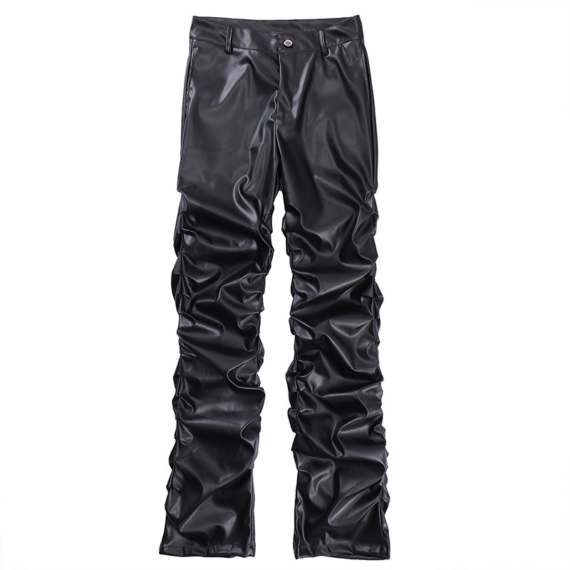 Hip Hop Mens Pleated Pu Leather Pants Harajuku Retro Streetwear Loose Ruched Casual Trousers Straight Solid Color Black Pants