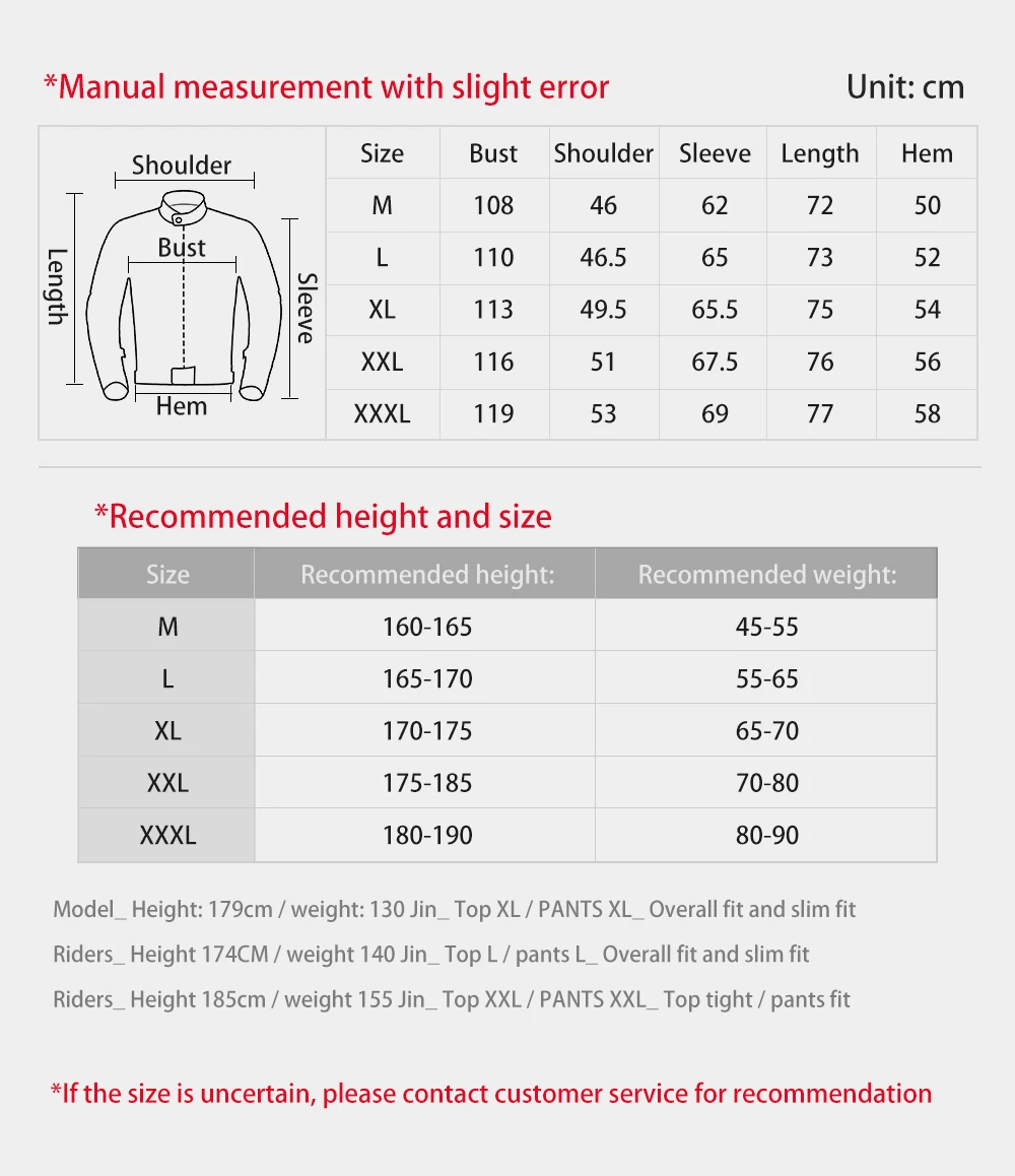 This jacket is in Asian sizes and might be a bit small for Europeans. Please refer to the size chart to select the size. Or contact the customer and provide your height, weight and bust size. The customer will recommend a suitable size for you! Thank you!