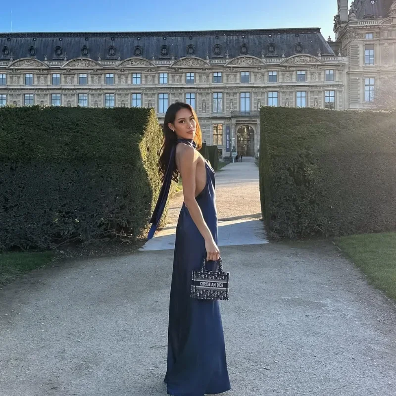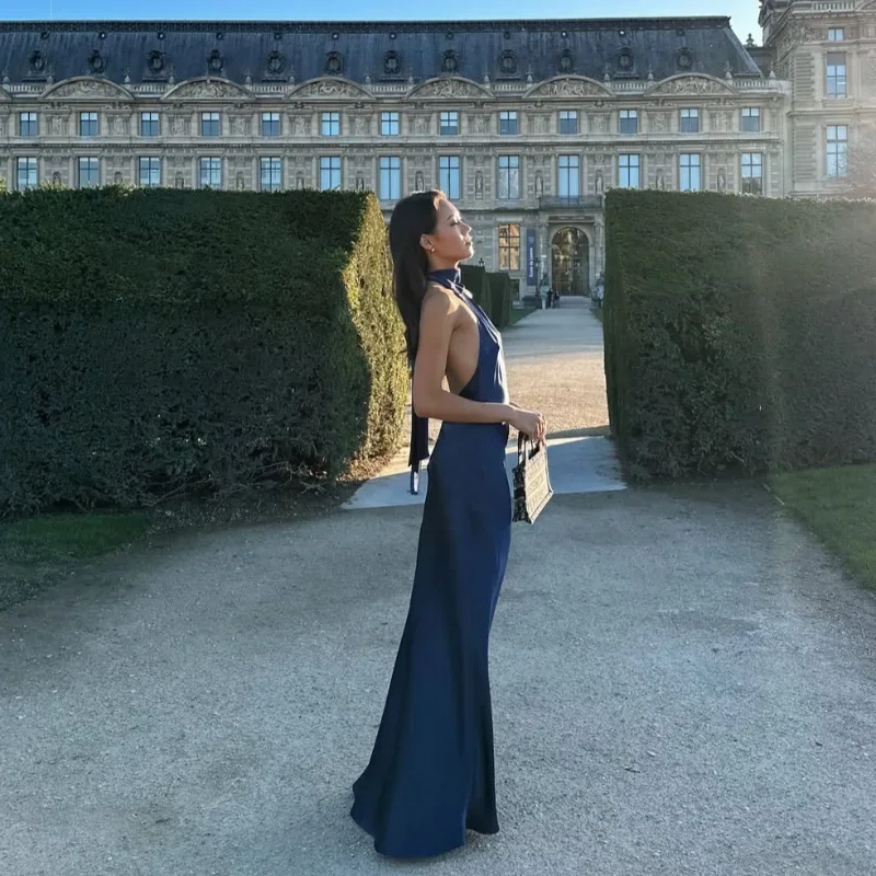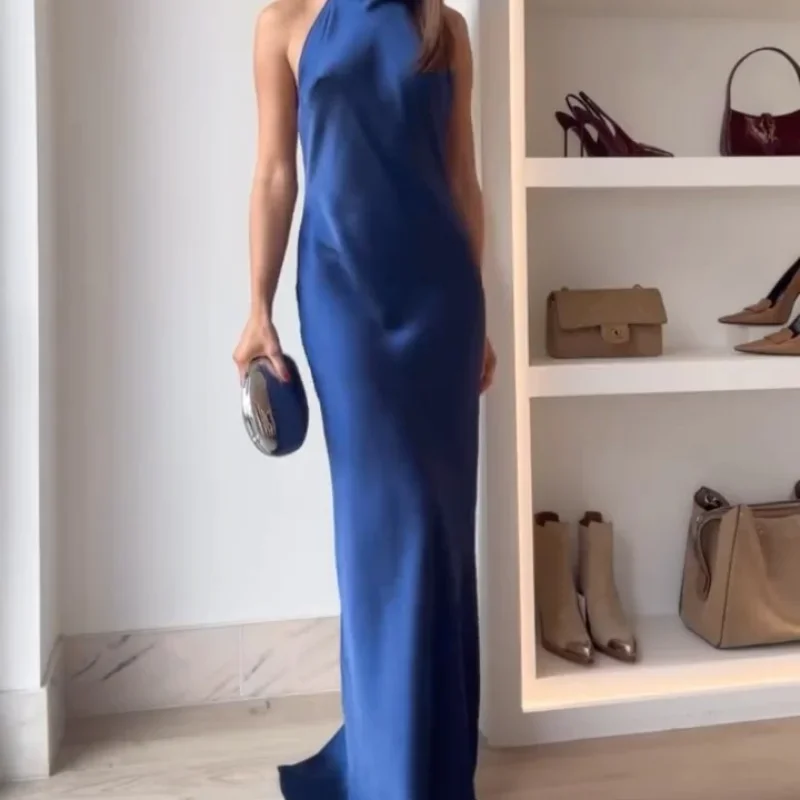 DressesSatin Halter Neckline Backless Sexy Maxi Dress Women Summer Ruffle Hem Slim Dresses Lady Evening Party Elegant Long Dresses 2025 –