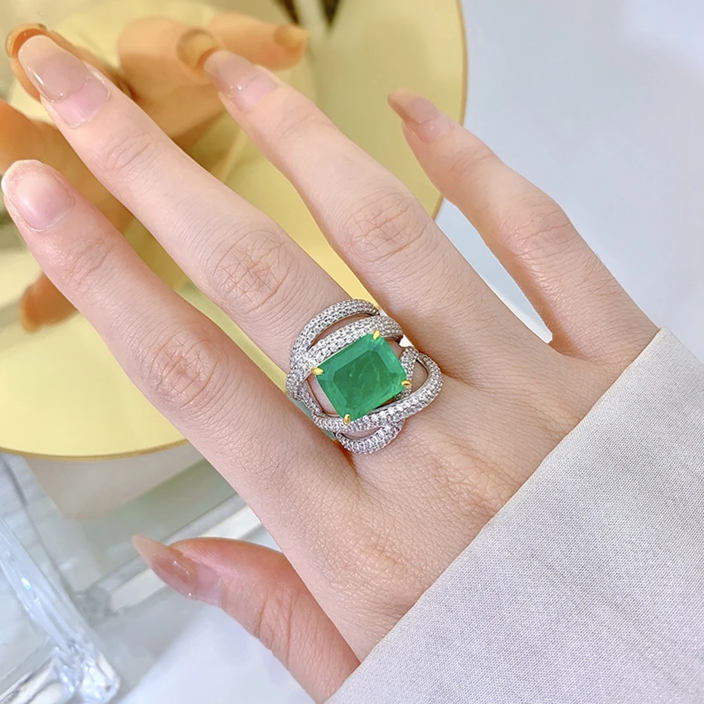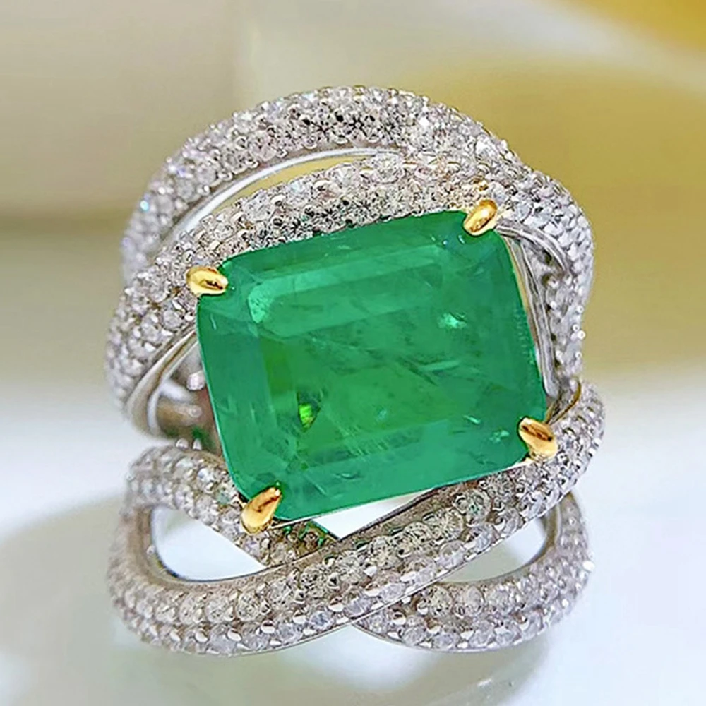 Wong Rain Luxury Vintage 925 Sterling Silver 5CT Created Moissanite Emerald Gemstone Party Ring For Women Fine Jewelry Wholesale